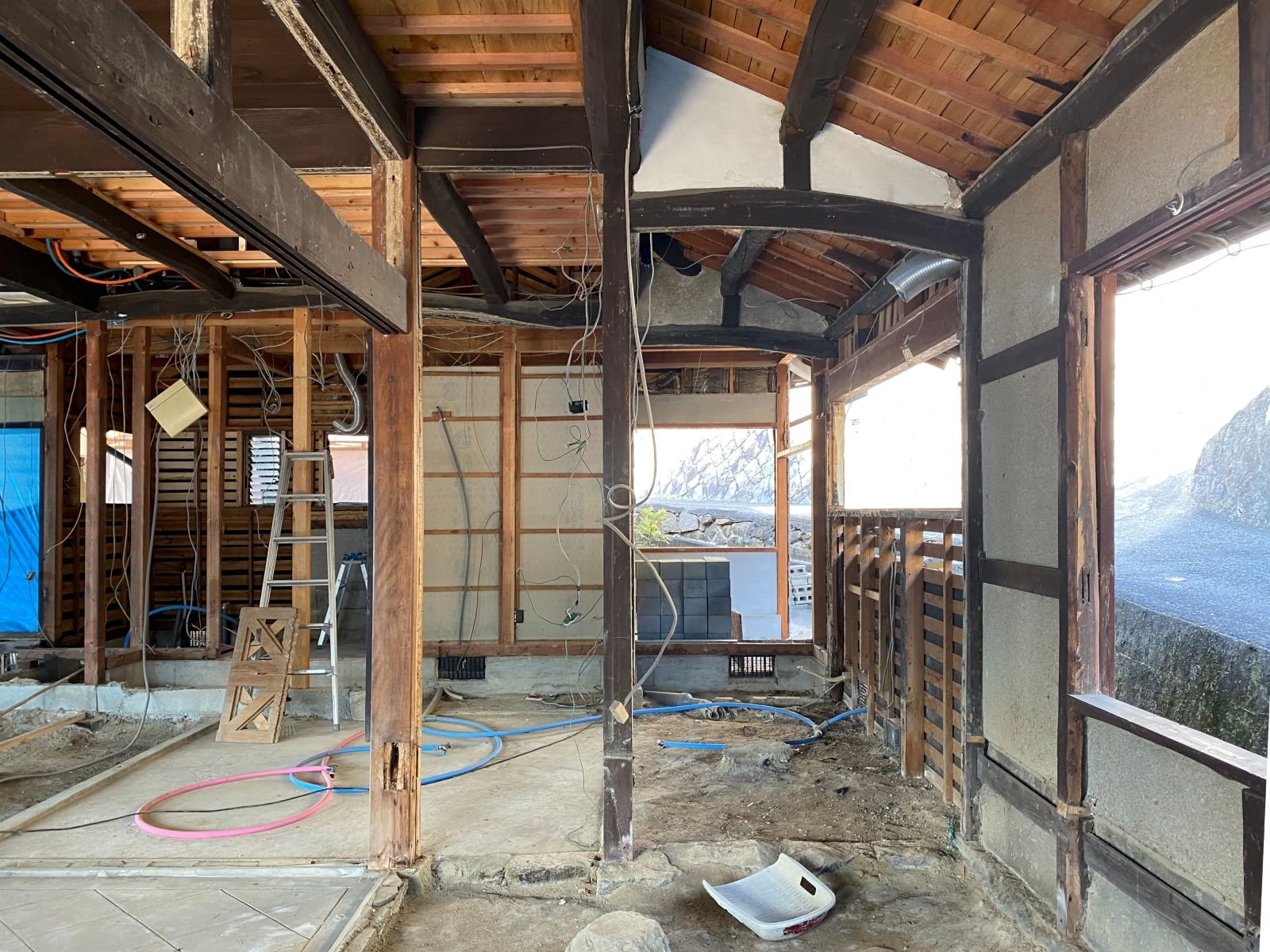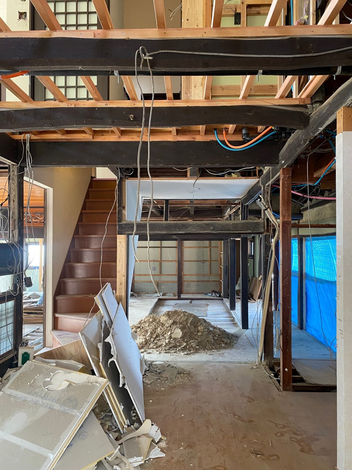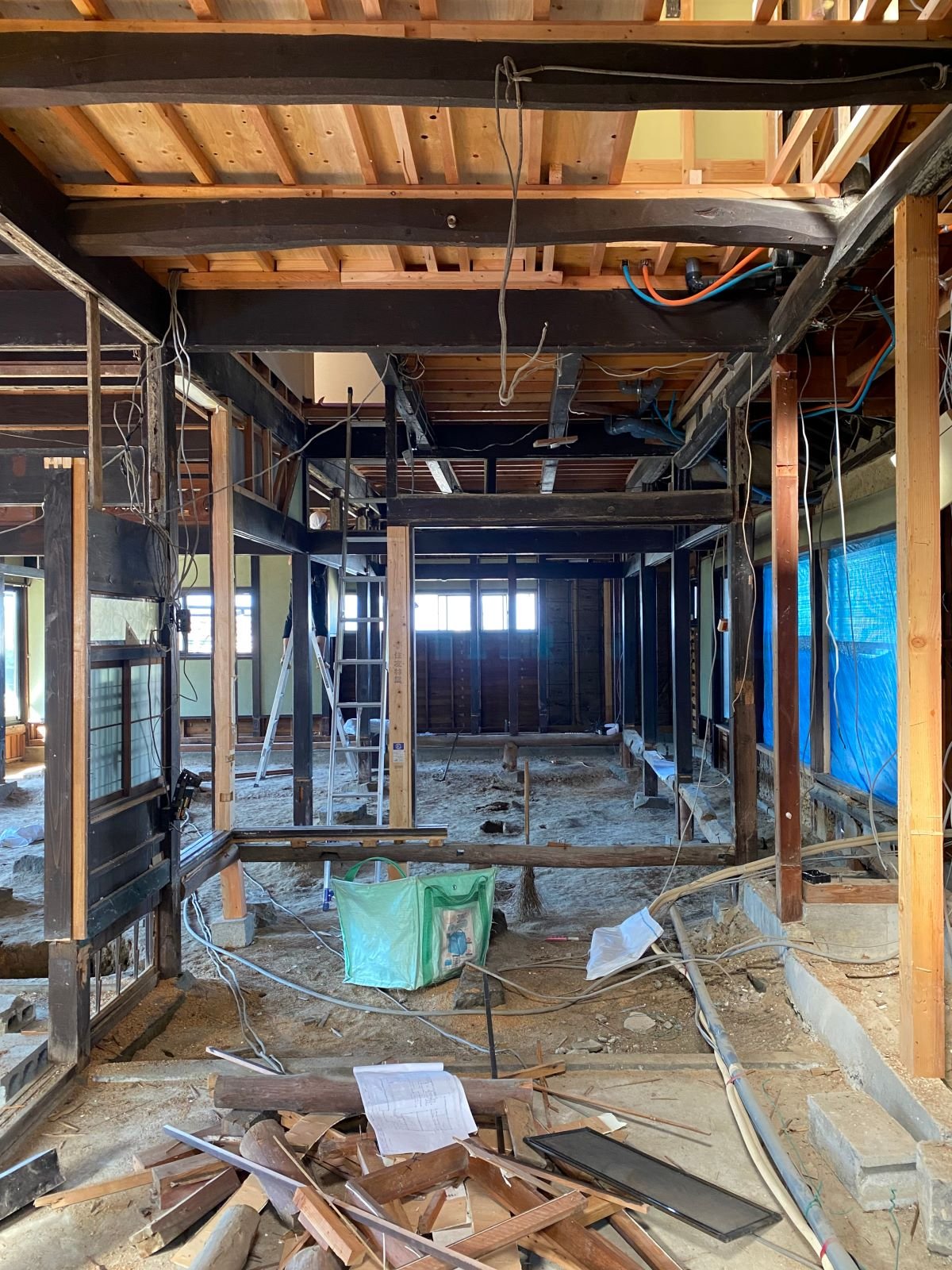 ☑築145年となると家の損傷が目に見えない部分に至る所にあり補修や補強を施すと共に断熱材がほとんど入ってはいない状態から床下から壁内、天井に隙間なく施し建物の状態に応じてコストも抑えつつ効果的に断熱性を向上させている