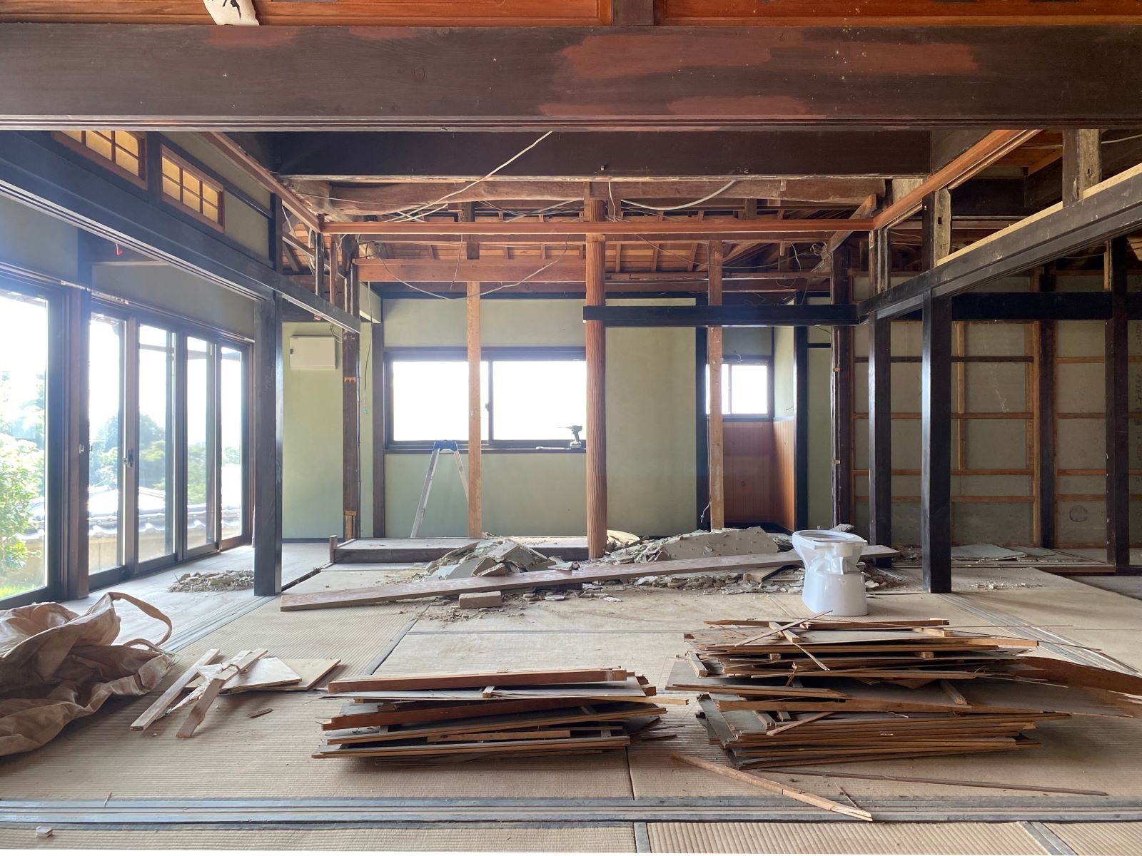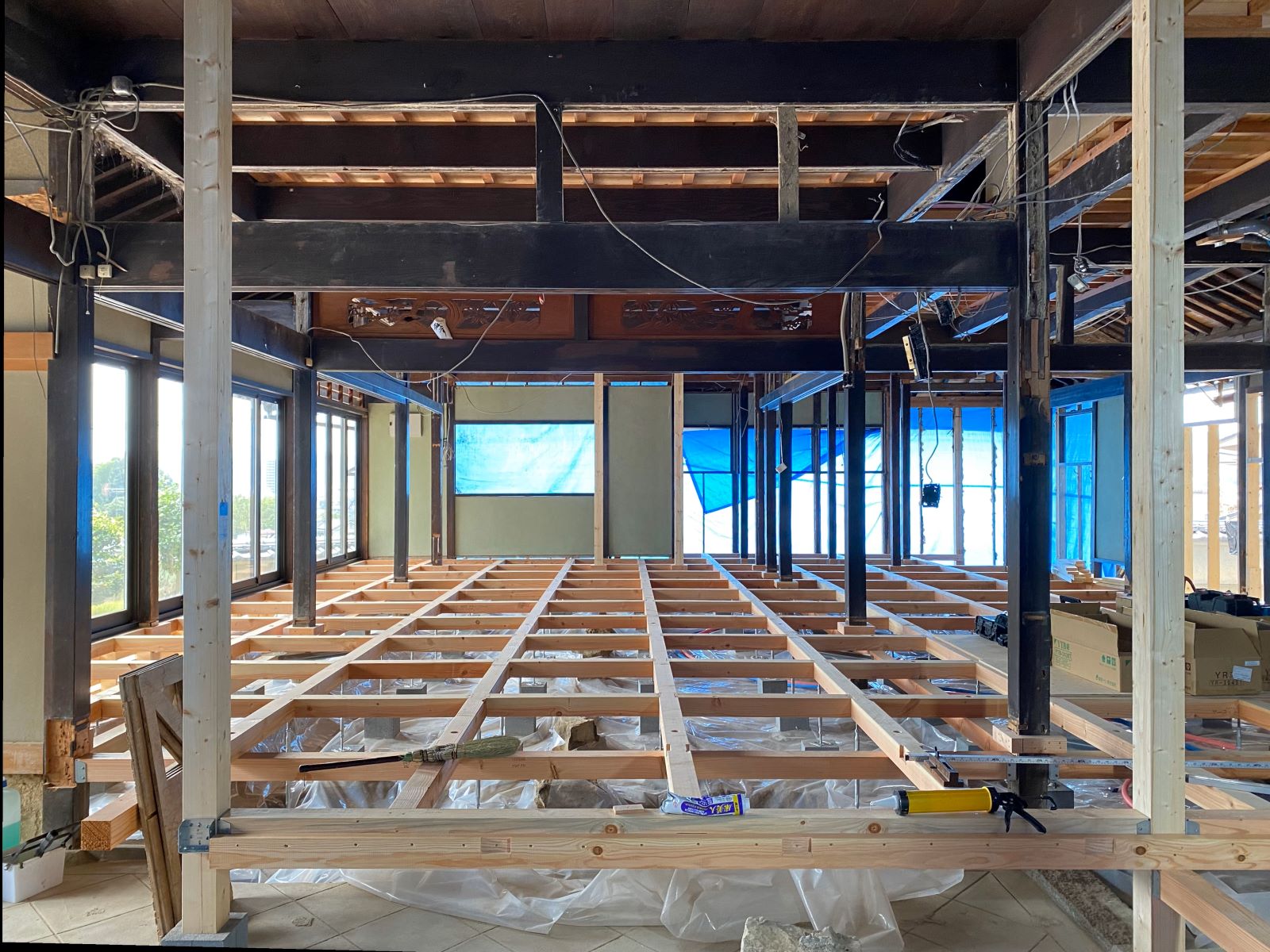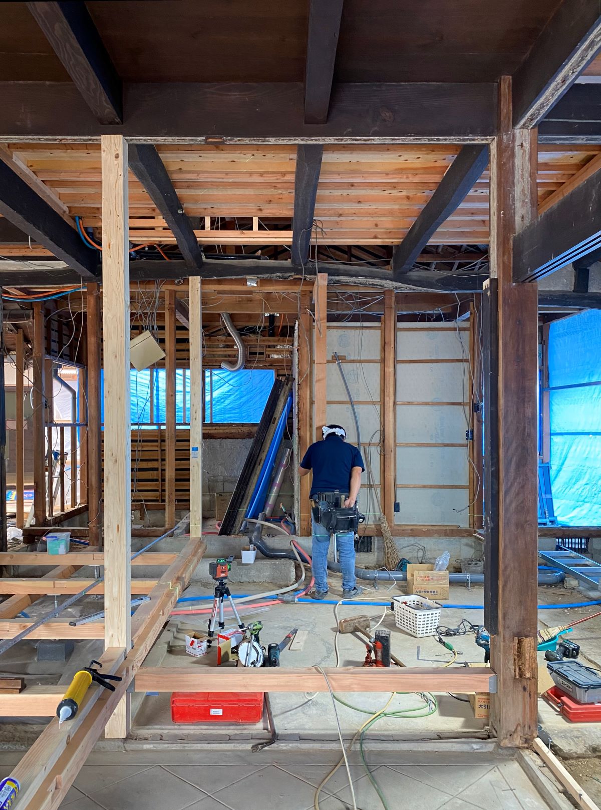☑築145年となると家の損傷が目に見えない部分に至る所にあり補修や補強を施すと共に断熱材がほとんど入ってはいない状態から床下から壁内、天井に隙間なく施し建物の状態に応じてコストも抑えつつ効果的に断熱性を向上させている
