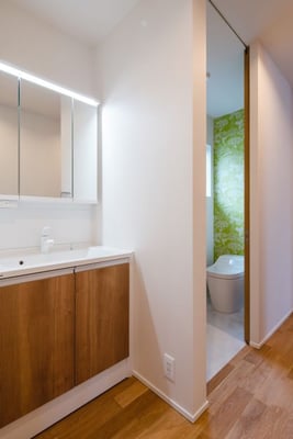 将来を見据え車椅子での生活に対応できるように1階の居室は引き戸とし水廻りは車椅子がそのまま入れる広さを確保している