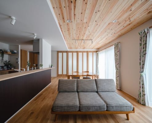 天井には杉材を張り天然木のいい香りが心地いい空間に