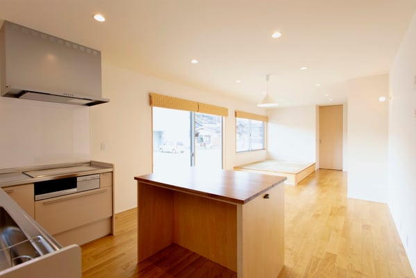 畳コーナーを設けてゴロゴロとゆったり過ごせる場所を提供し、畳下のスペースを活用し引出を作り収納量を確保。